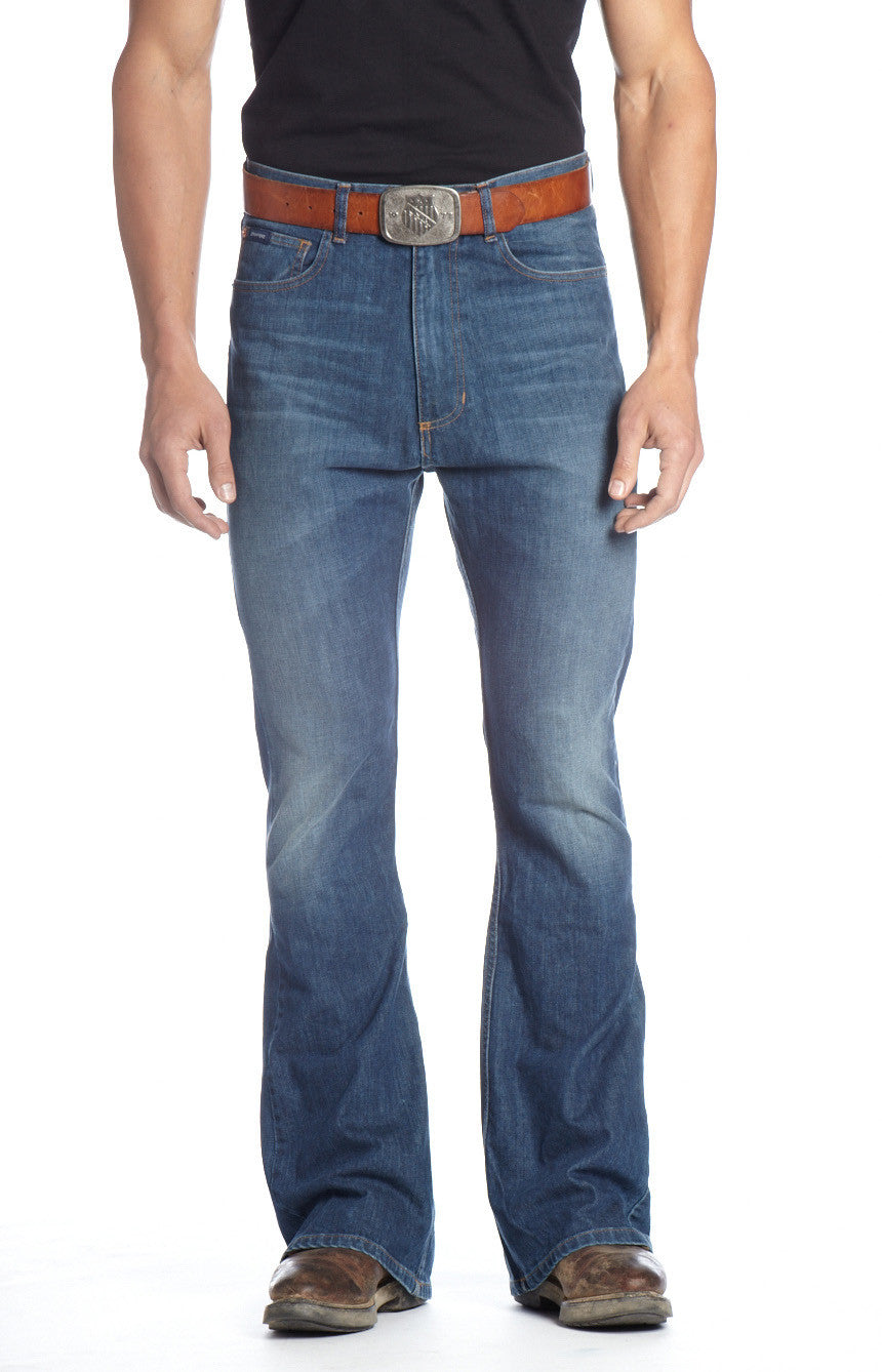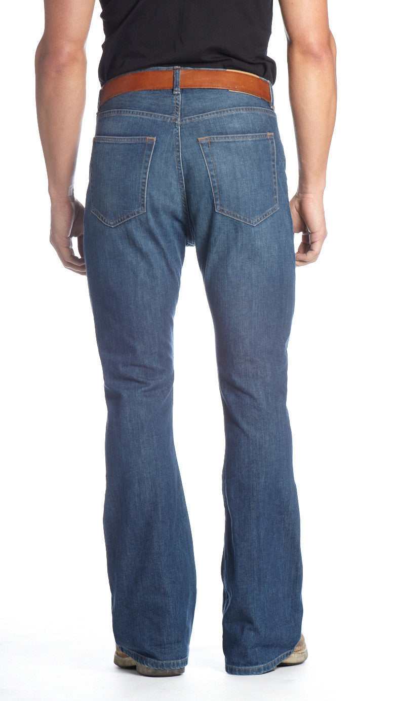 The Super Boot Jean is a throwback to Led Zeppelin's bell bottom style. This is a high waist jean, with a slender fit through the hips and thighs. Made from Cone Mills 100% cotton light-weight denim. The jeans are perfectly aged with hand sanding at the thighs and whiskers. Hand-crafted in California.