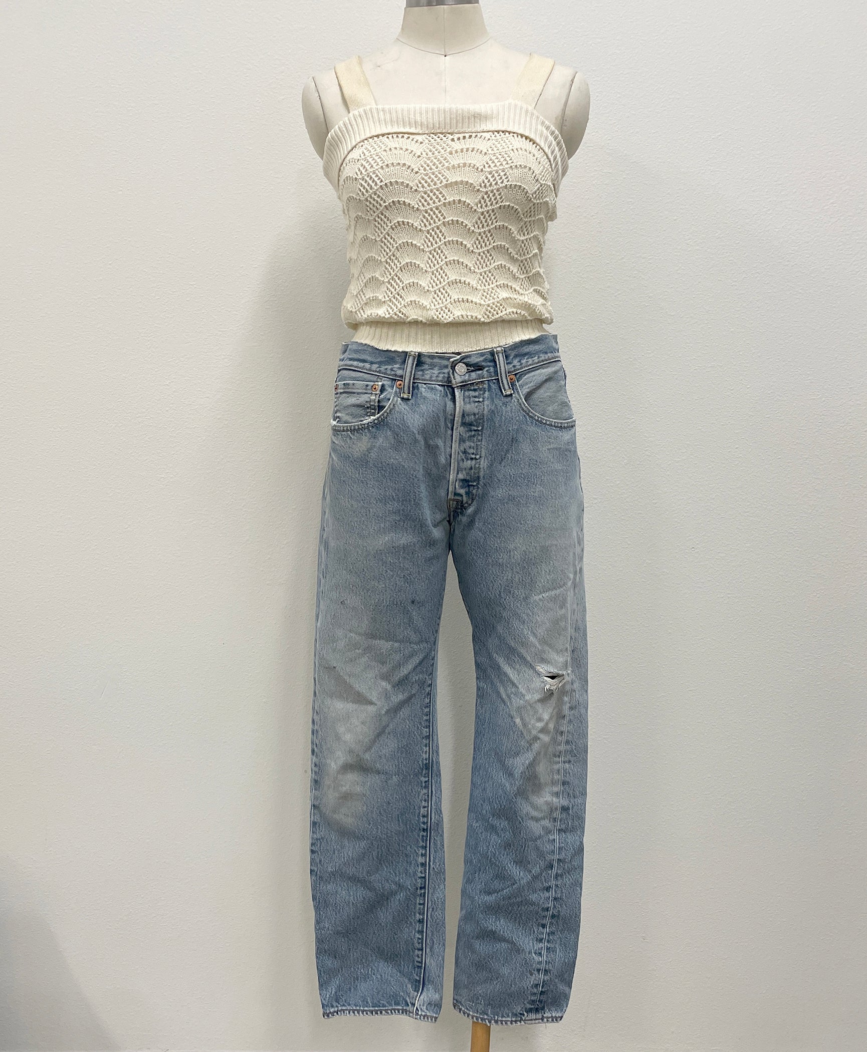 1990's Levi's button fly 501's jeans are the quintessential denim for every outfit. An easy pair with a light stonewash and great wear. A small hole at the knee. These would be great worn oversized and along the hipbones just like the supermodels in the 90's did.